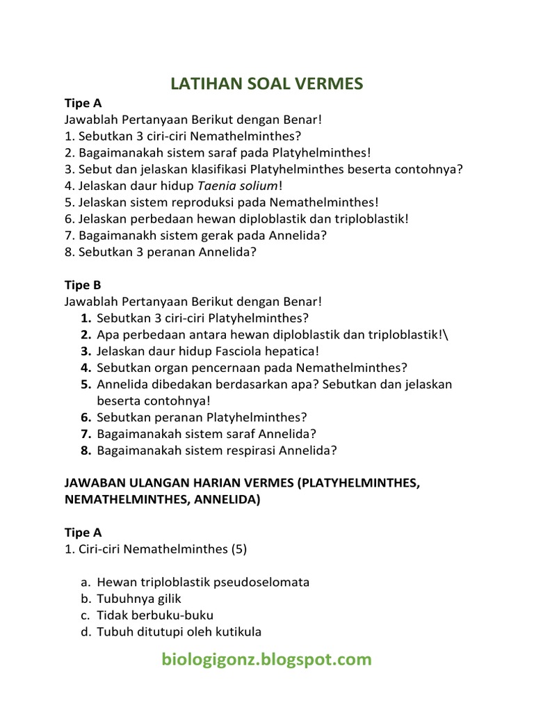 View LATIHAN SOAL VERMESpdf from NEGERI 30 at SMAN 1 Malang.