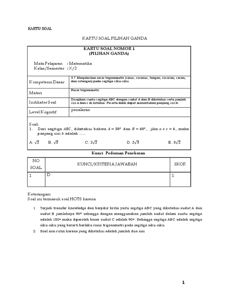 Soal Hots Masalah Yang Melibatkan Fungsi Trigonometri