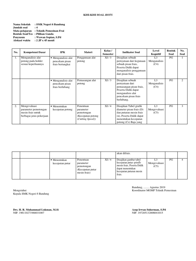 Contoh soal hots bahasa indonesia sma kumpulan dokumen file guru modul guru pembelajar slbtksdsmpsmasmk lengkap 2016. Pisau sudut angular milling cutter D. Soal Latihan 5 Teori Kejuruan Teknik Pemesinando.