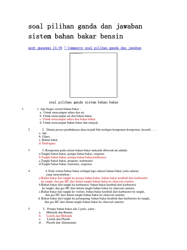 Ilmu Pengetahuan Soal Pilihan Ganda Dan Jawaban Sistem Bahan Bakar Bensin
