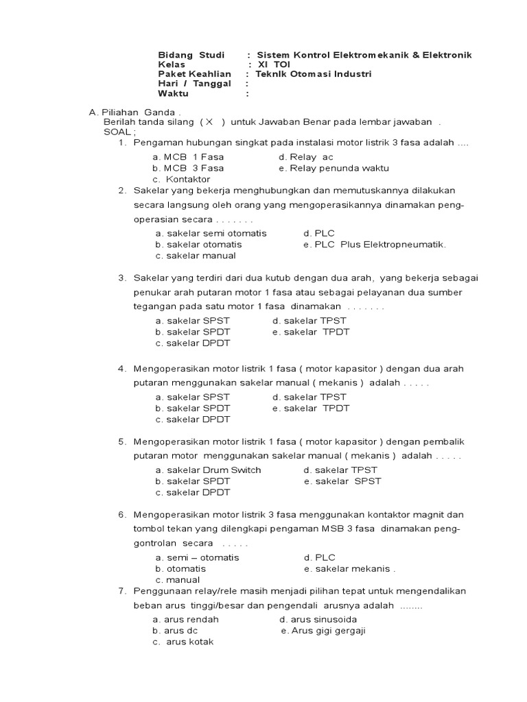 Soal Soal Sistem Kontrol Elektromekanik Dan Elektronik Xi Toi Teknik Listrik Doc