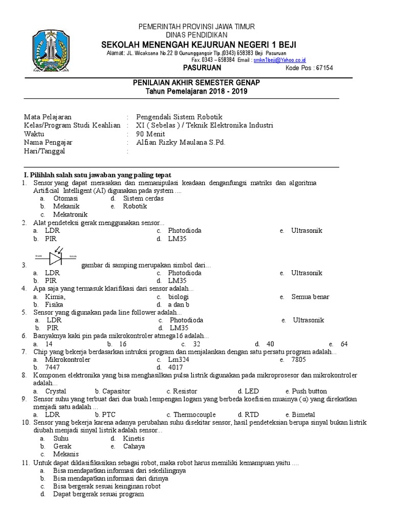 Bank Soal Pengendali Sistem Robotik Kelas Xi Semester Gasal Ajat Didik Budiansyah