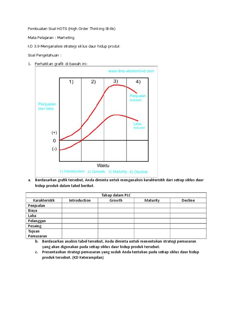 Setiap perusahaan harus melakukan pemilihan segmentasi pasar karena konsumen mempunyai perbedaan kebutuhan oleh setiap produk oleh karenanya konsumen mempunyai reaksi yang berbeda untuk setiap produk yang ditawarkan kepadanya. Konsep segmentasi Targeting dan Positioning ini digunakan untuk memetakan konsumen yang akan menjadi target pasar serta memposisikan suatu produk dalam benak konsumen tersebut. Contoh Soal HOTs versi sendiri admin 20181105 2 Uncategorized Dalam rangka menunaikan kewajiban selepas mengikuti pemberdayaan MGMP PKWU maka saya akan menyisipkan contoh soal LOTs dan HOTs dalam pilihan ganda dan essay dalam tulisan di bawah ini.