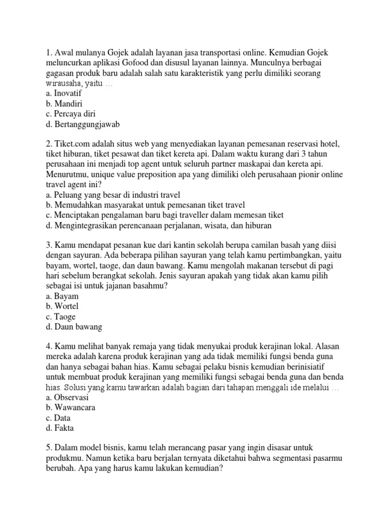 KARTU SOAL MARKETING PAKET SOAL Pertemuan ke 1 2 3. Sedangkan peran pasar dalam perekonomian indonesia adalah sebagai tempat untuk menjual barang jasa hasil produksi dan meningkatkan gairah perekonomian. Pada kesempatan kali ini kakak ingin membagikan kumpulan soal-soal pilihan ganda bahasa Indonesia tentang negosiasi kelas 10 dan kunci jawabannya.